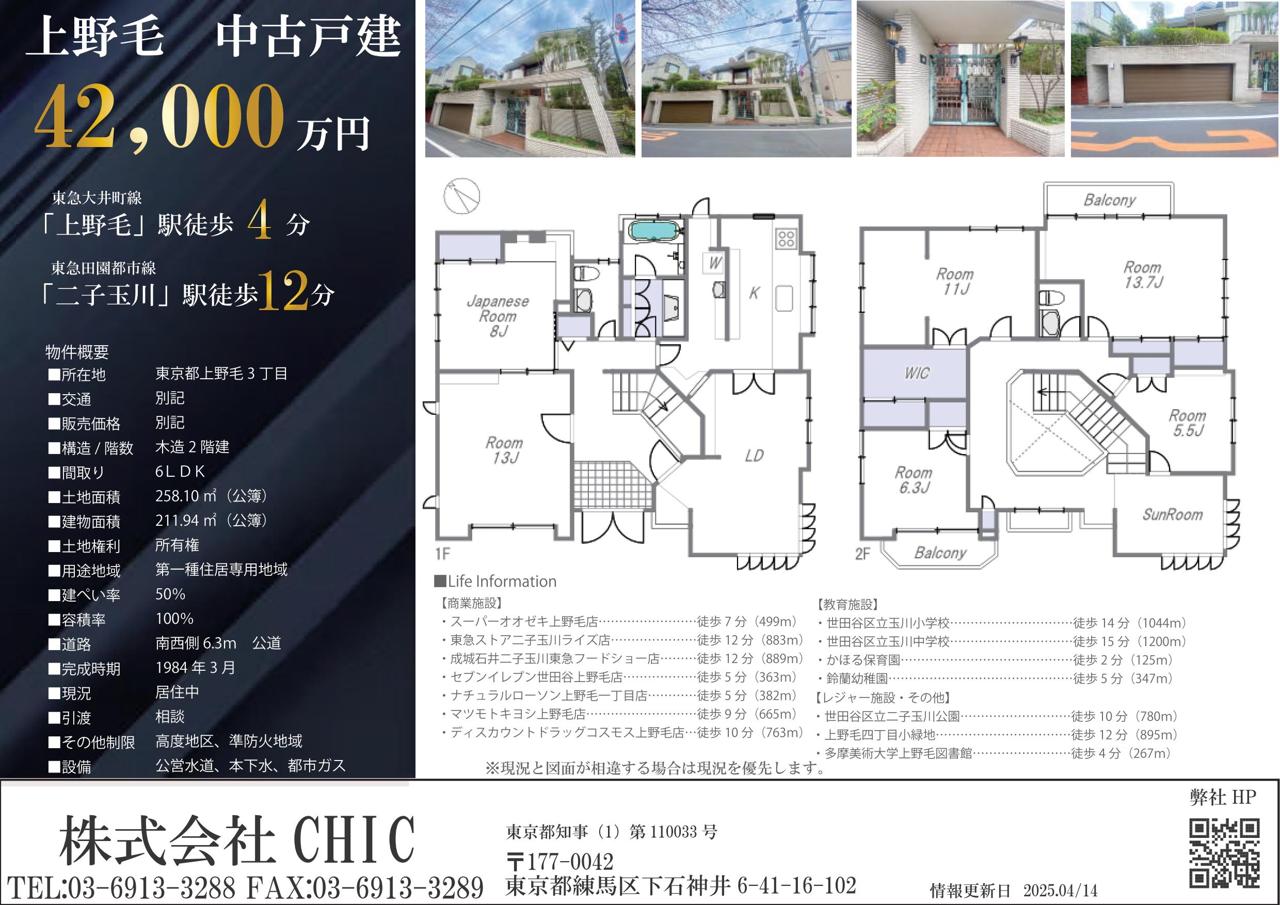 - 【東急大井町線『上野毛』駅徒歩4分!】敷地面積258㎡超!建物面積211㎡超のゆとりある間取りプラン!カースペース2台分6LDK庭付きの間取り!開放感のある玄関ホール!世田谷区上野毛の緑豊かな住宅街!