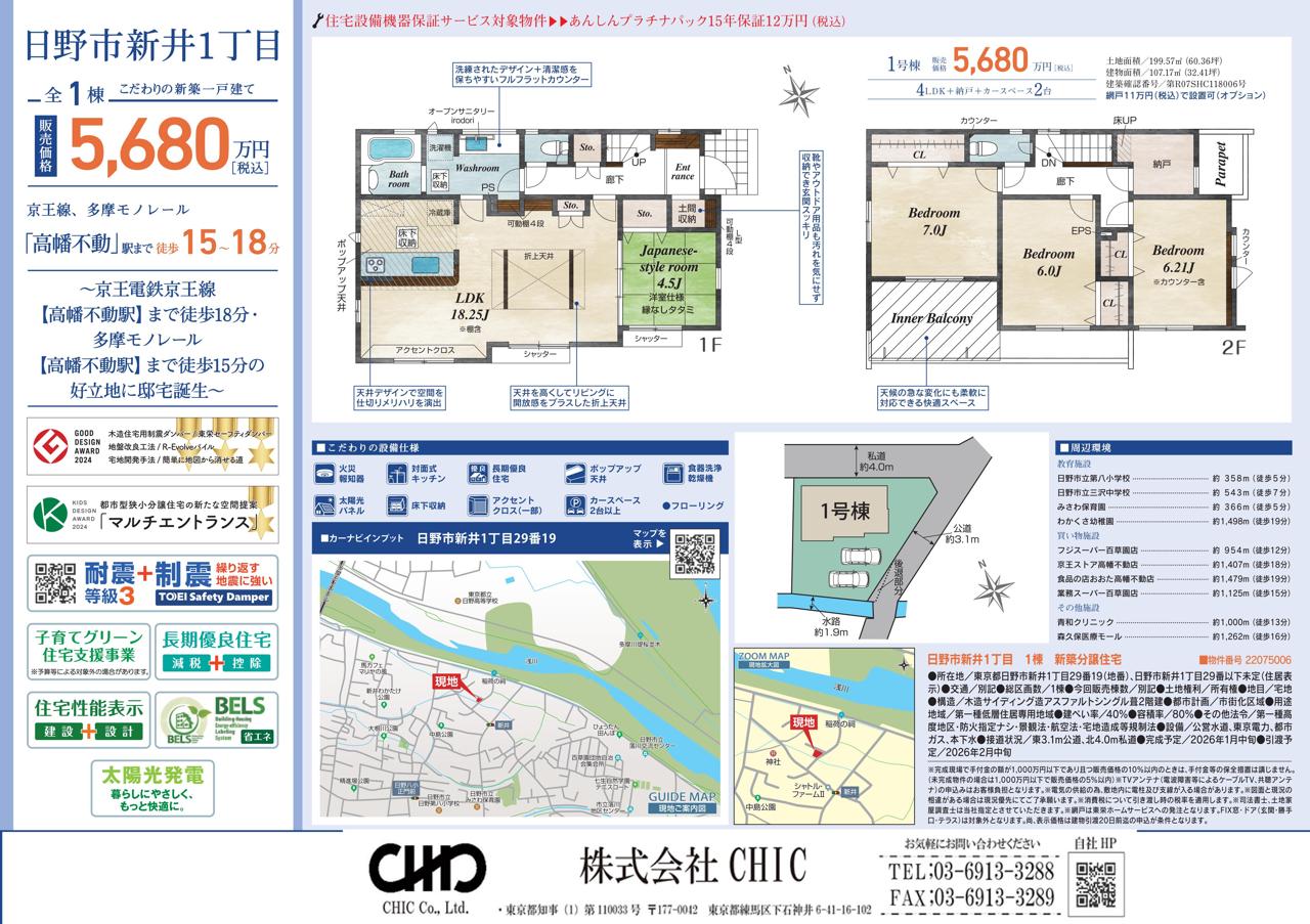 - 日野市新井1丁目 新築分譲住宅 全1棟