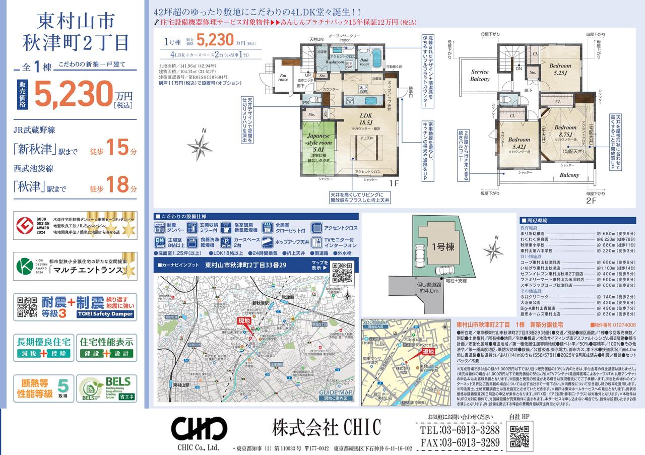 - 東村山市秋津町2丁目 新築分譲住宅 全1棟