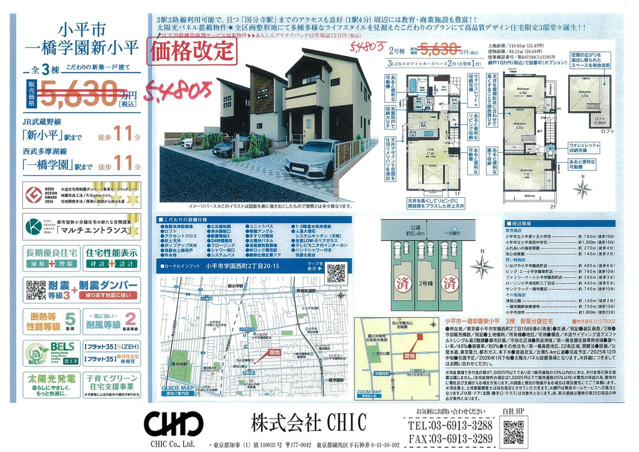 小平市学園西町2丁目 新築分譲住宅 全3棟