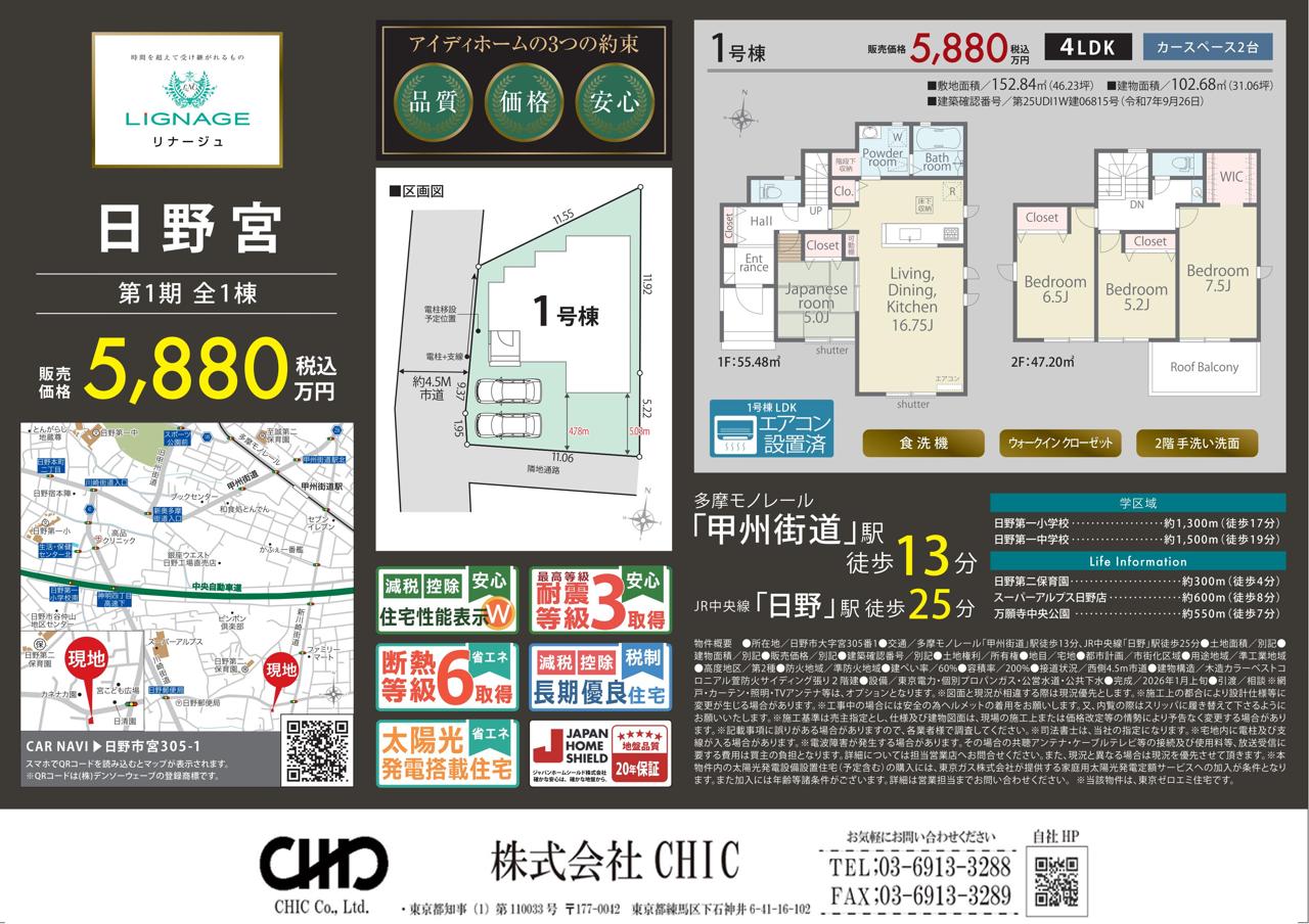 - 日野市大字宮の閑静な住宅街に堂々登場!4LDKのゆとりある間取りプラン!