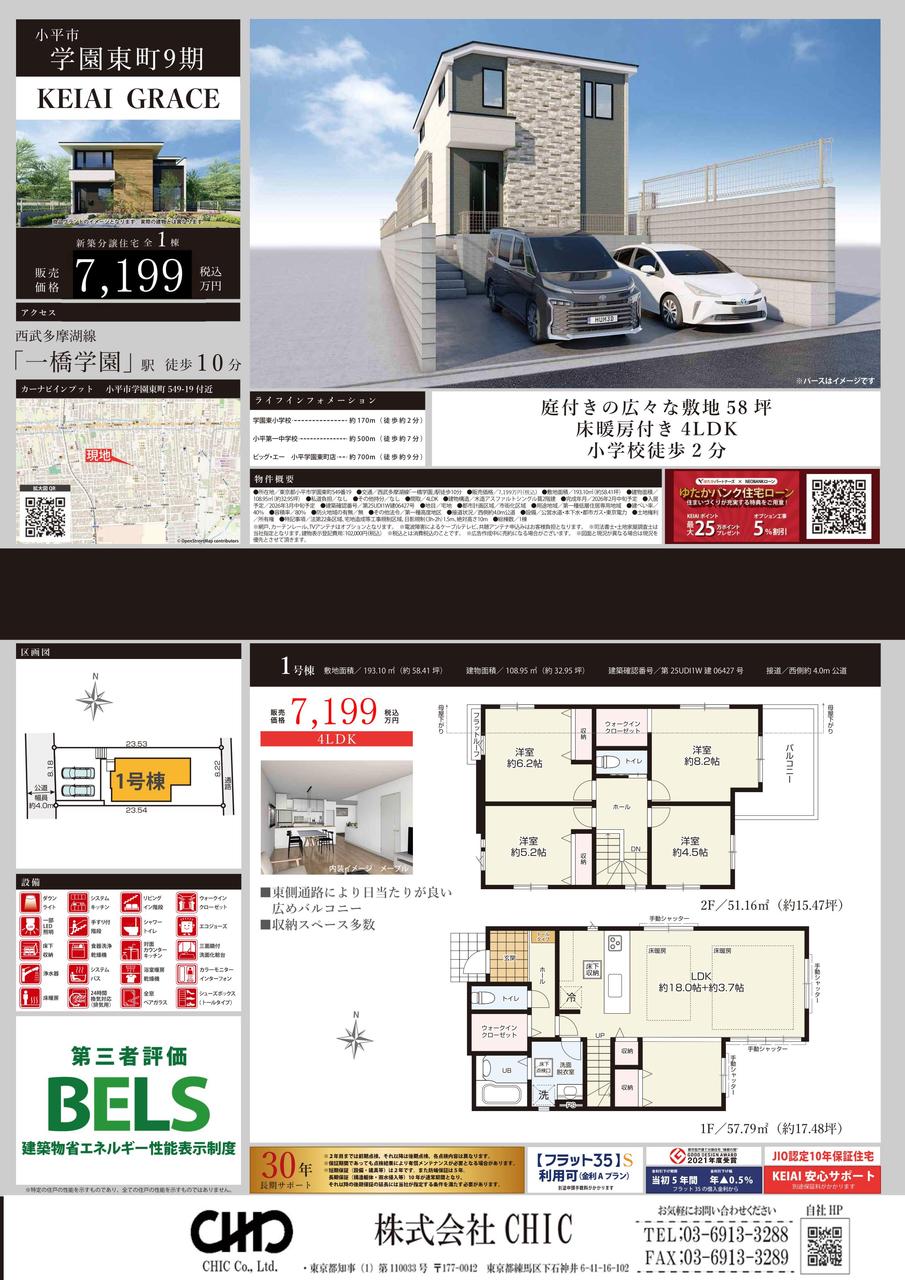 - 小平市学園東町の閑静な住宅街に堂々登場!カースペース2台分!4LDKのゆとりある間取りプラン!
