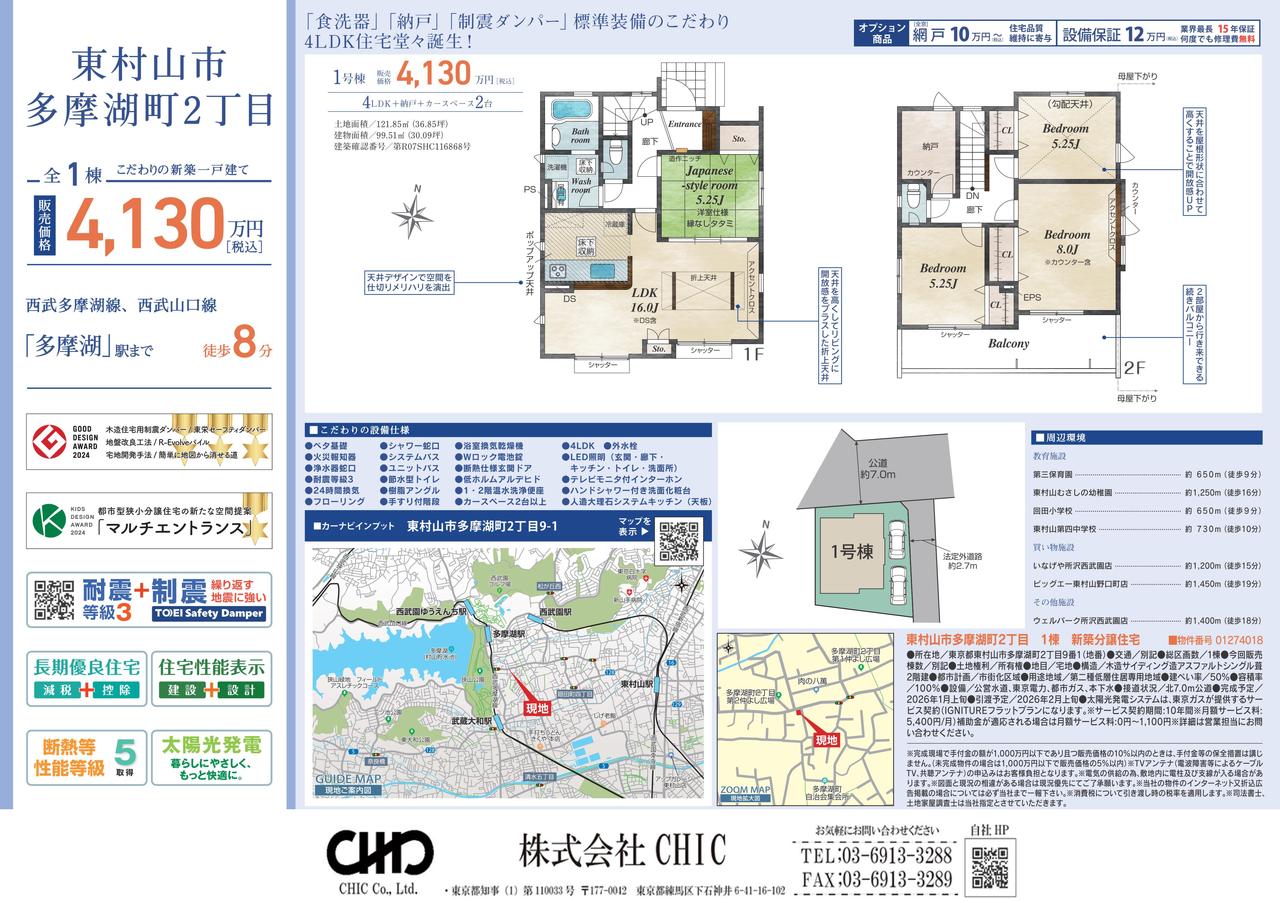 東村山市多摩湖町2丁目 新築分譲住宅 全1棟