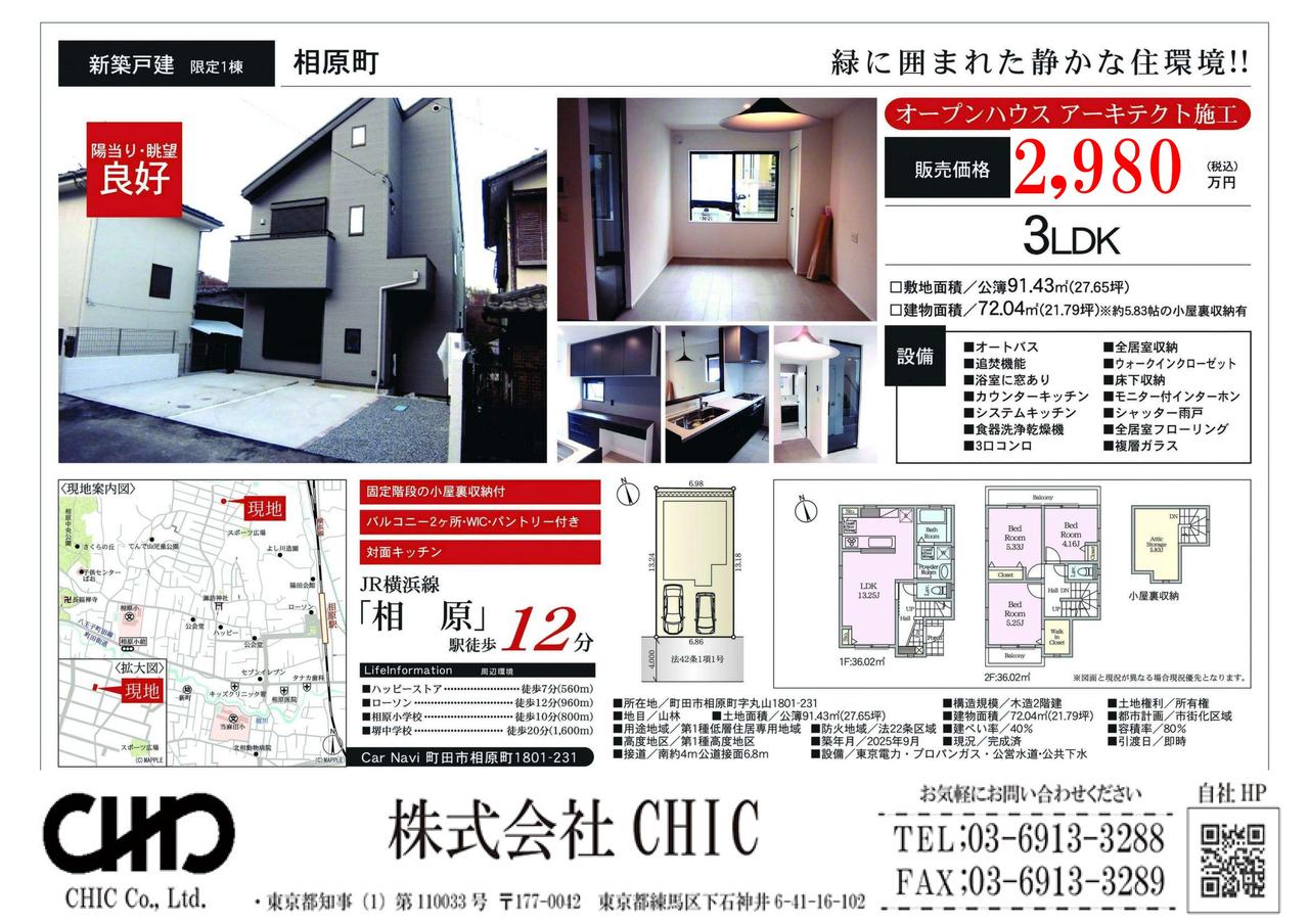 - 町田市相原町の閑静な住宅街に堂々登場!広々カースペース付き3LDKの間取りプラン!