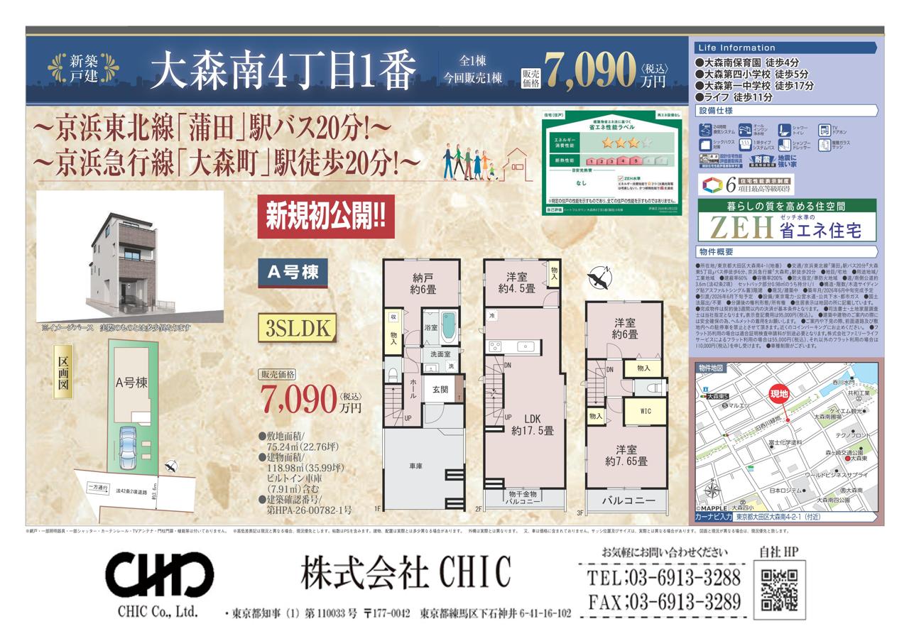 - 大田区大森南の閑静な住宅街に堂々登場!カースペース付き居室4部屋のゆとりある間取りプラン!