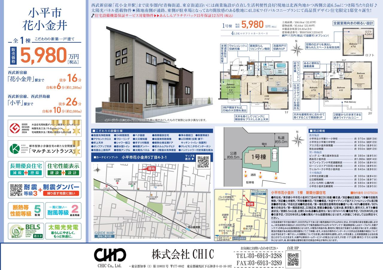 小平市花小金井5丁目 新築分譲住宅 全1棟