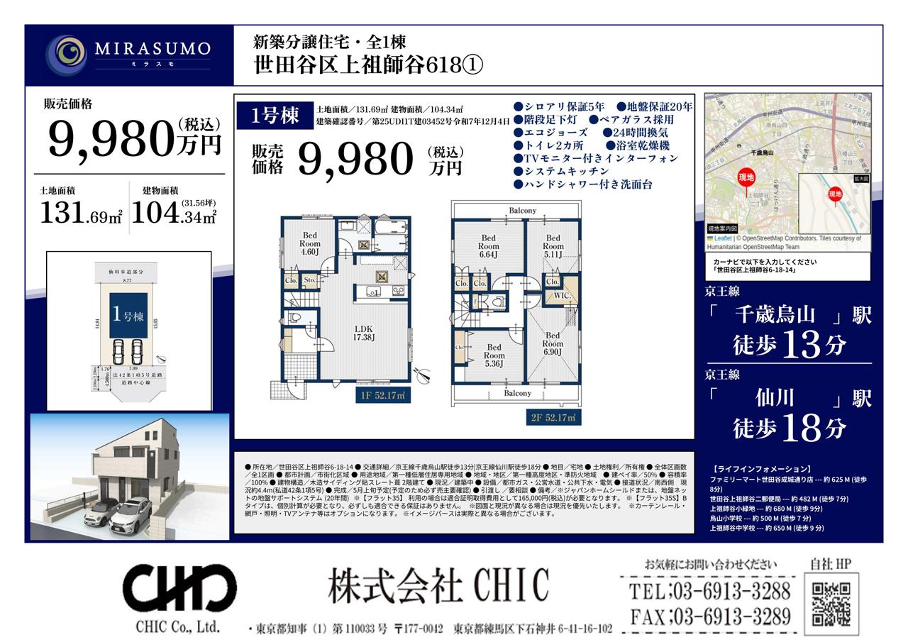 - 世田谷区上祖師谷6丁目 新築分譲住宅 全1棟